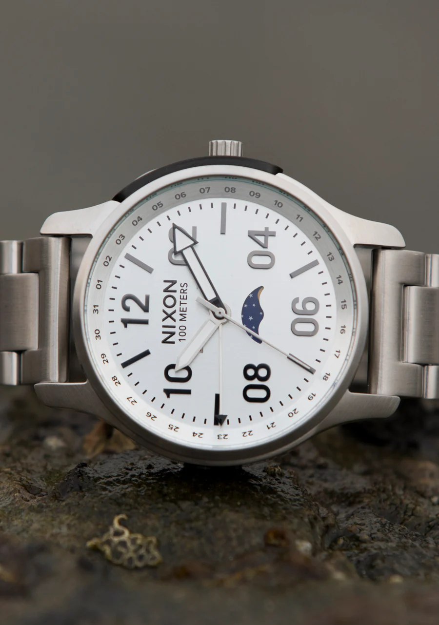 Para quienes llevan el agua salada en las venas, el Ascender es un reloj de grado n谩utico, que ancla la utilidad en un mar de estilo. Est谩 listo para nadar, surfear o navegar con una caja s贸lida de acero inoxidable y resistencia al agua de 100 metros. Adem谩s, la fase lunar, las funciones de d铆a/mes y el movimiento de cuatro agujas nunca dejan de impresionar.