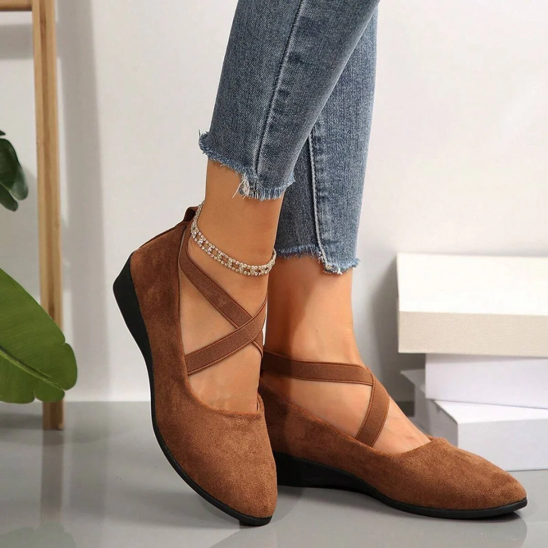 Con puntera redondeada y acabado aterciopelado, estos zapatos estilo bailarina aportan un aire delicado y contempor谩neo, perfecto para quienes valoran la elegancia en el d铆a a d铆a.