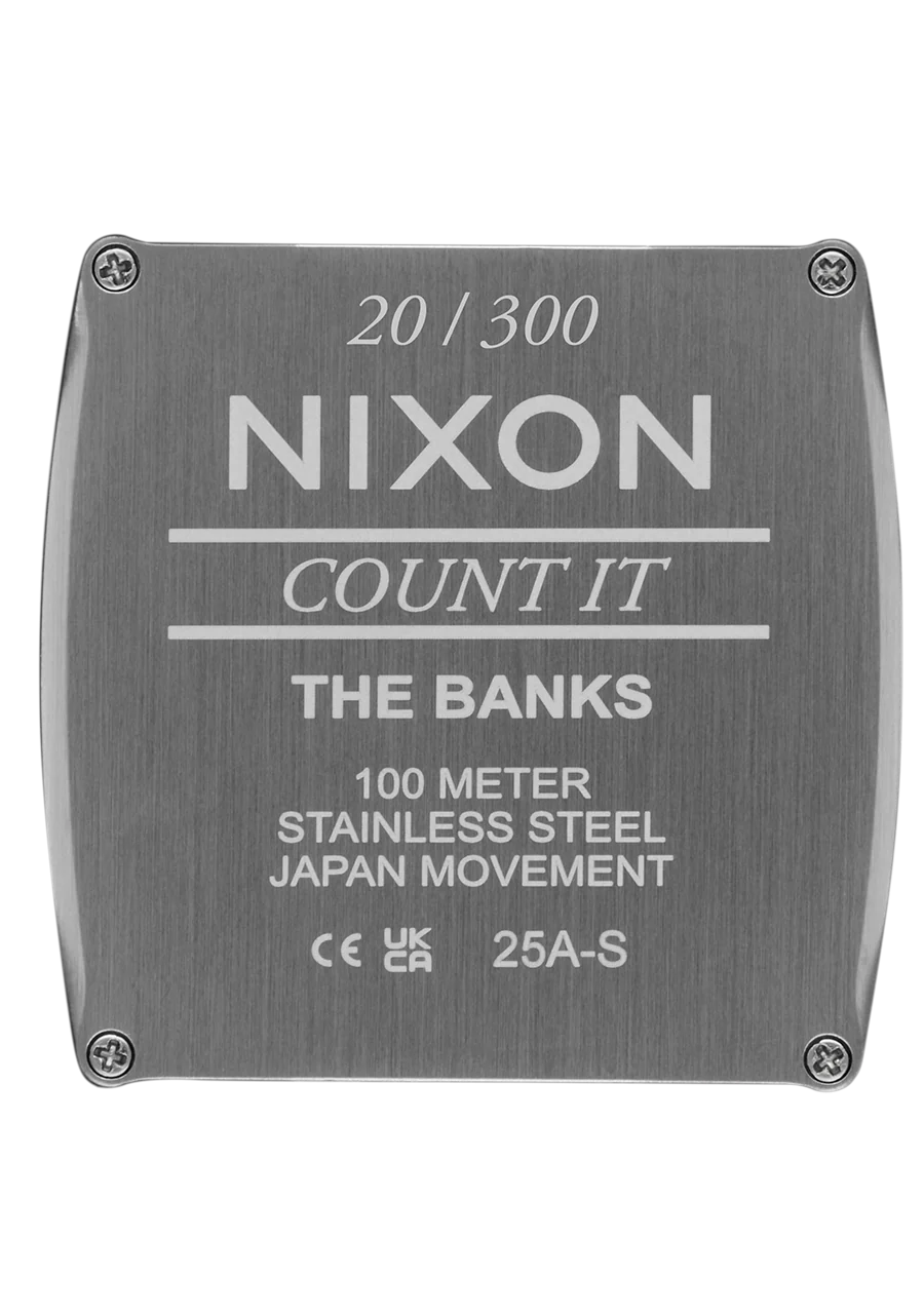 El Nixon Banks lleg贸 por primera vez a las tiendas en 2005. Avanzando 20 a帽os, el Banks regresa por demanda popular. Pero no te duermas. Este cl谩sico reloj GMT de doble zona horaria est谩 disponible solo por tiempo limitado. Solo 300 unidades disponibles en todo el mundo.