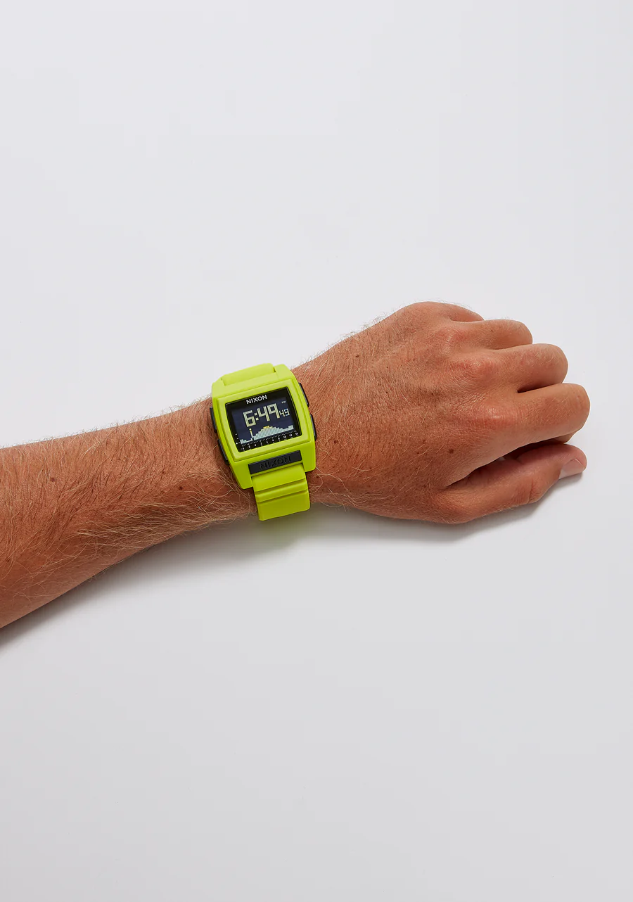 Di adiós a perder olas. El Base Tide Pro tiene información de mareas preprogramada de 550 playas en todo el mundo, brindándote conocimiento local sin importar dónde remes. Resistente al agua hasta los pulsadores, te ofrece control total incluso durante la sesión. La correa de silicona de tacto suave está ventilada para mayor comodidad, y hemos duplicado nuestro exclusivo Locking Looper™ patentado para mantenerla bien segura en tu muñeca.
