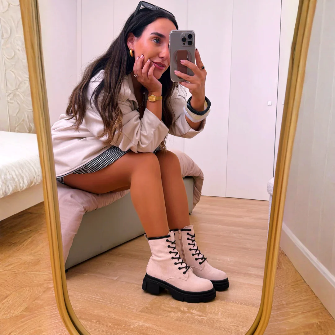 Una bota con estilo militar moderno, dotada de plataforma. Es un calzado que marca tendencia, ideal para quienes buscan comodidad y un look atrevido.
