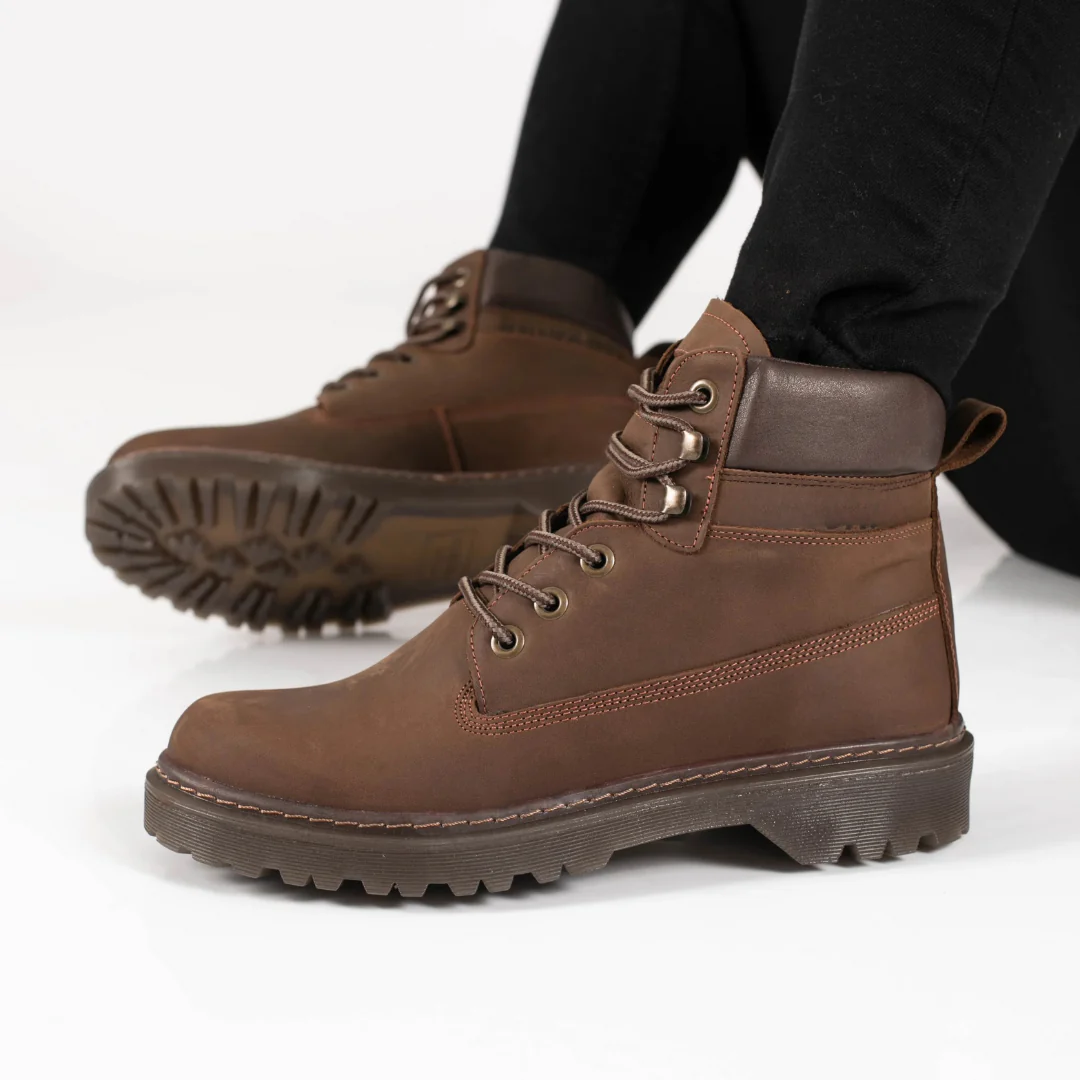 Su construcci贸n robusta garantiza el soporte adecuado. El uso de cuero tanto en el exterior (engrasado) como en el interior asegura un calzado de larga vida 煤til, que mantiene su forma y confort a lo largo del tiempo.