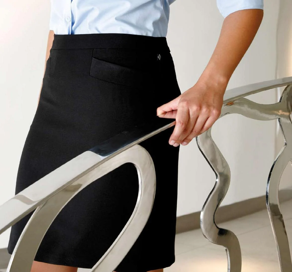 falda con forro y dos bolsillos delanteroscon cremallera y bot贸n en la espalda para cerrar.