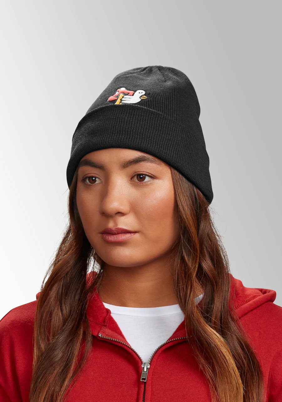 S茅 el due帽o en el momento mientras llevas un gorro hecho con Other People’s Plastic. Dise帽ado en colaboraci贸n con la artista Hannah Eddy, este gorro te asegura la mayor calidez y hace volar la imaginaci贸n.