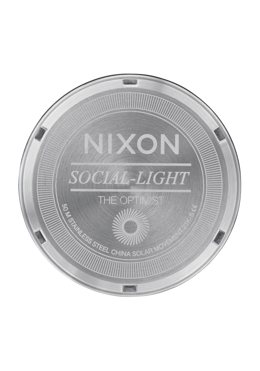 Avanza hacia el futuro. Un look moderno de joyería cargado de energía ilimitada, el Optimist es el reloj social de Nixon. Con la combinación de detalles geométricos, acabados pulidos y la célula solar que la mantiene funcionando eternamente, el Optimist está aquí y su futuro se ve brillante.