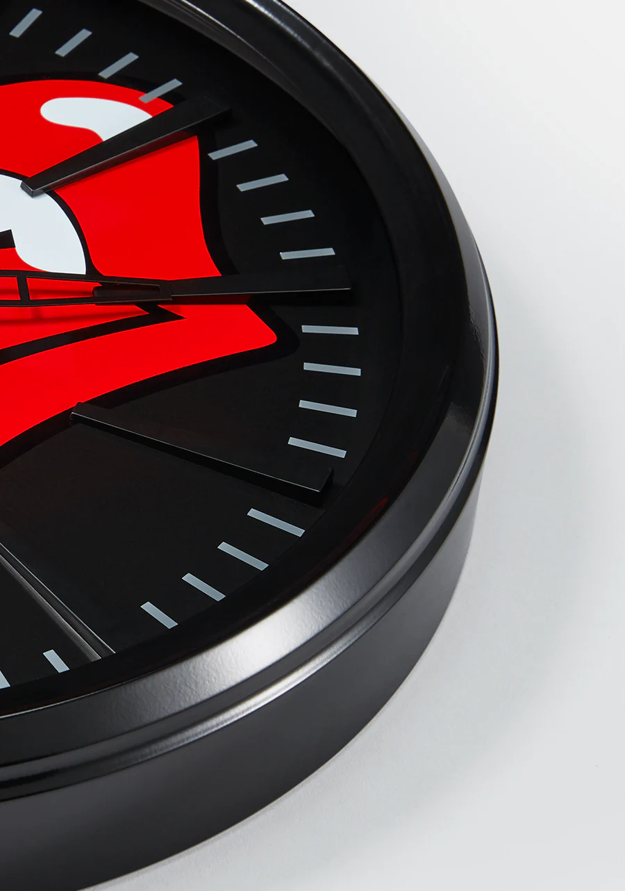 El reloj de pared definitivo para el bar, tu cuarto de juegos y tu sala de ensayos. Llena las paredes de rock con este reloj, cuyo diseño de la lengua y los labios de los Stones resalta en mitad de la esfera negro oscuro. No te pierdas un solo detalle. El Sentry viene completo con su mecanismo de cuarzo japonés, agujas moldeadas especiales e índices en relieve.