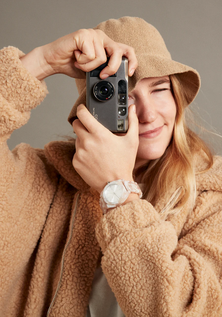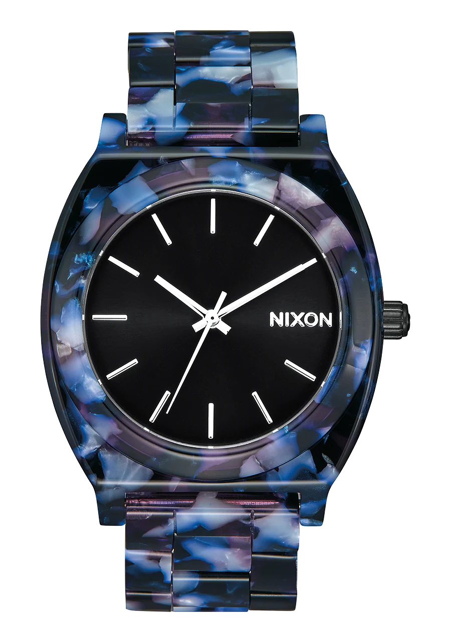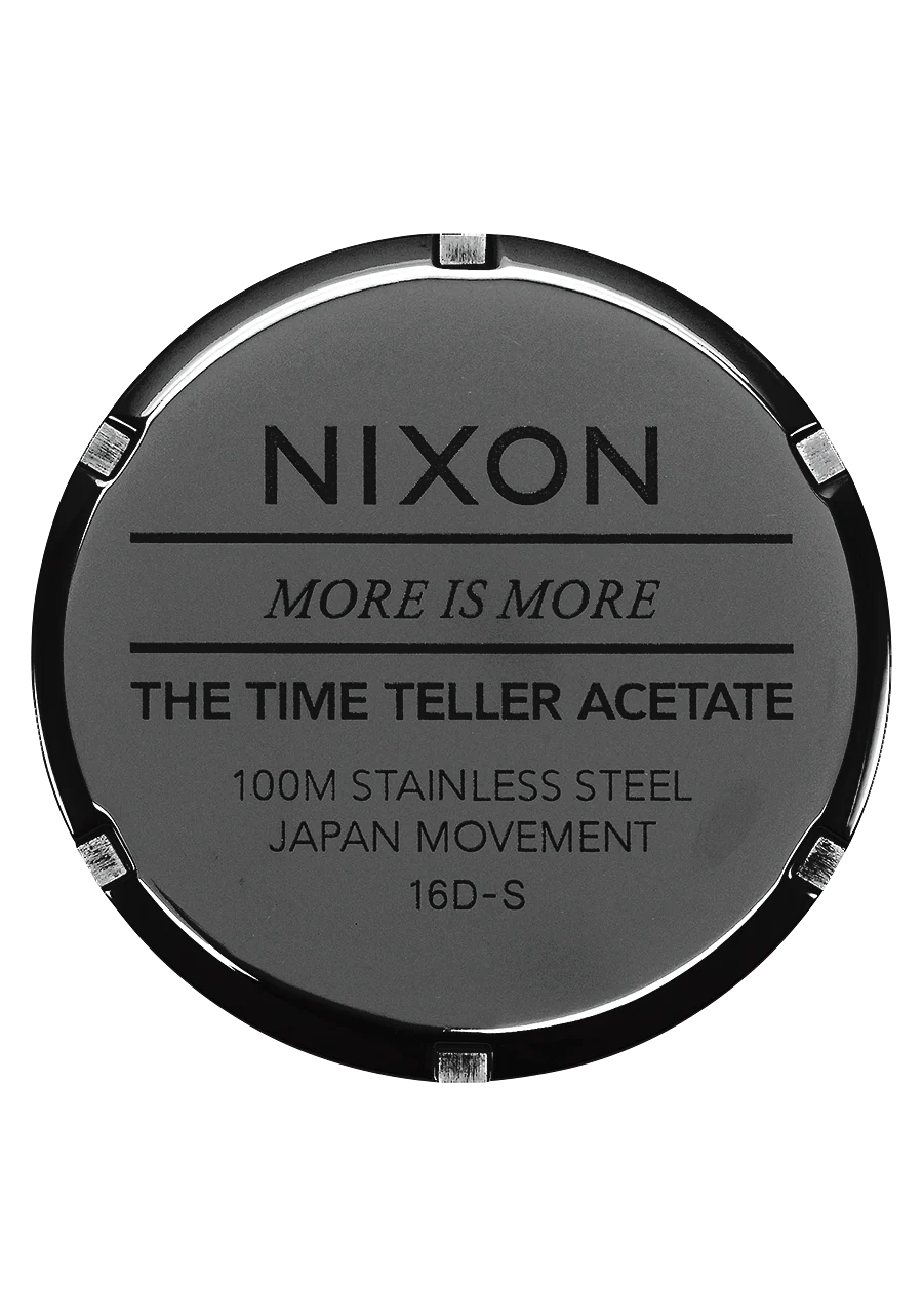 Nuestro ic贸nico reloj se viste con un acabado de acetato, creando un estallido de color rico y vibrante. El acetato es un compuesto de origen vegetal con un potencial ilimitado para la personalizaci贸n. Cada patr贸n est谩 dise帽ado para darle al dise帽o cl谩sico del Time Teller un toque contempor谩neo.