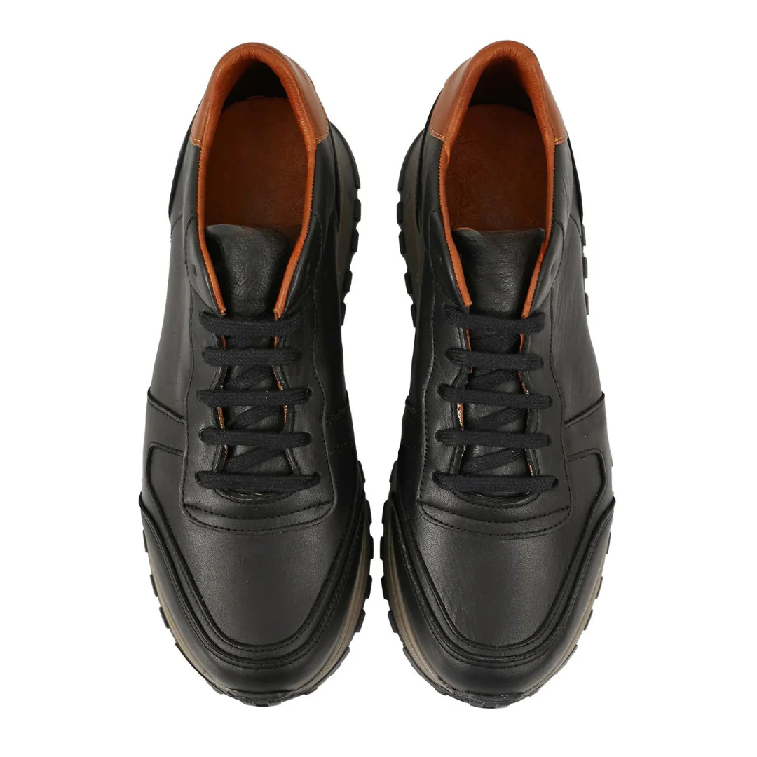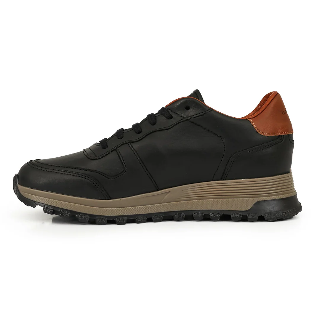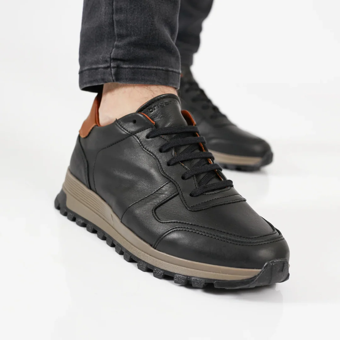 Combinando la cl谩sica piel negra con detalles en marr贸n, estas zapatillas son la elecci贸n ideal para un look moderno y sofisticado.