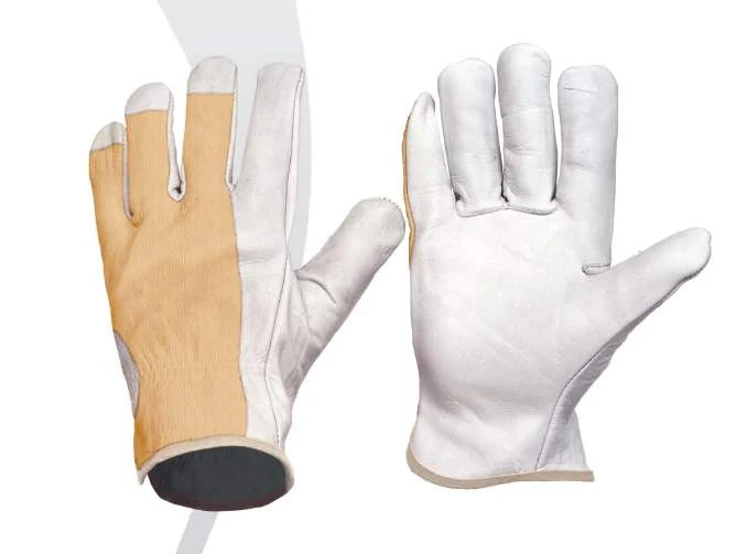 Guante con palma en piel y dorso en algodón. Puño elástico. Color blanco. Pack 12 pares. WTG1501