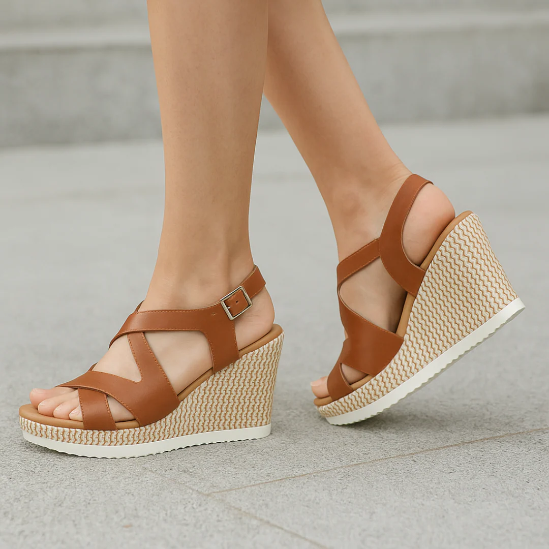 Tacón de cuña con tiras cruzadas y plataforma de yute