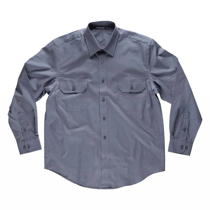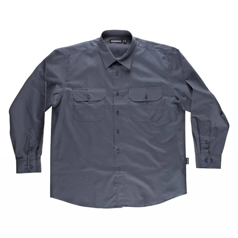 Camisa manga larga, dos bolsos de pecho con carteras. 100% Algodón.